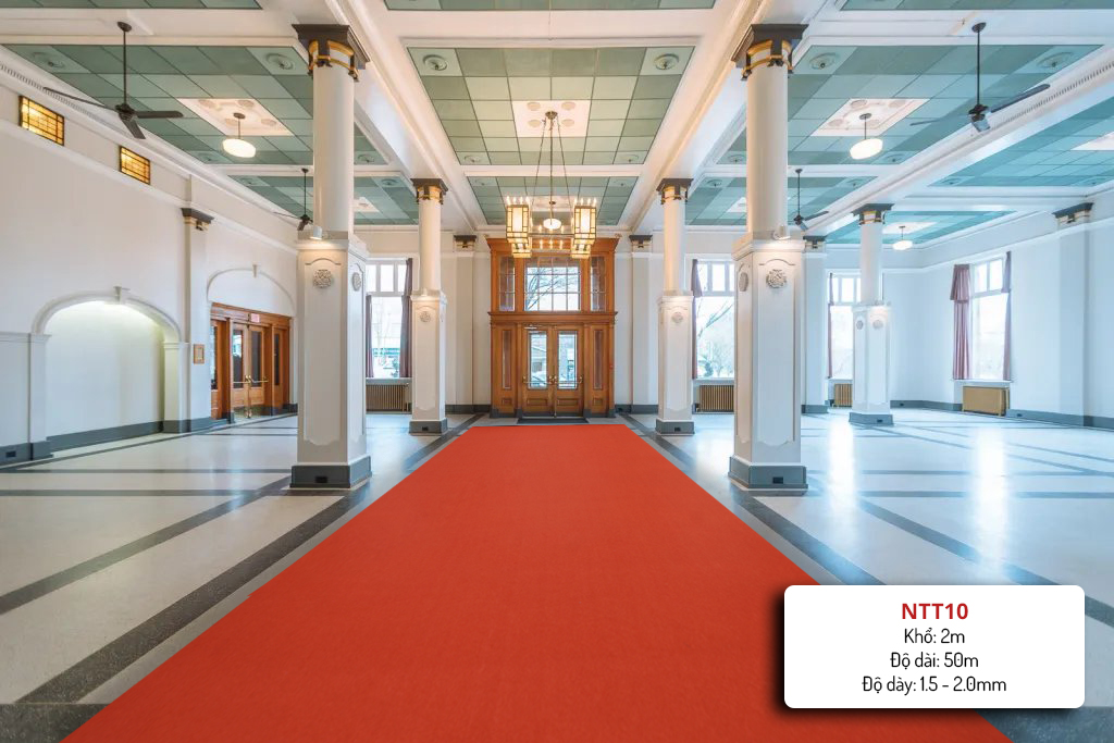 • Ngăn cản tiếng ồn: Thảm sự kiện là sự lựa chọn tốt cho các sân khấu, lễ hội, đám cưới, trải đường dẫn, lối đi khách sạn, trung tâm thương mại, trang trí cầu thang,…. bởi có khả năng chống ồn rất tốt.